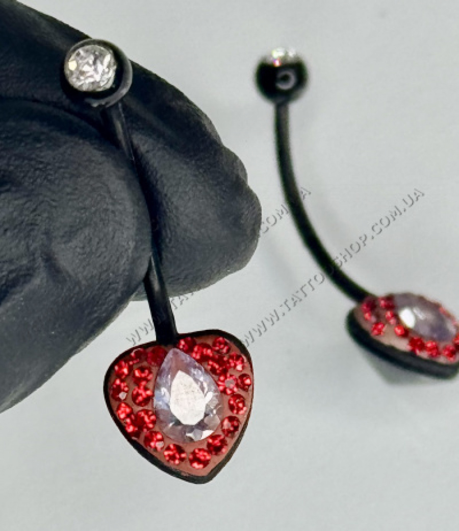 Прикраса з чорного біопласту і кристалів.Ніжка 1.6 мм, довжиною 23 мм - нарізається на необхідну довжину. Різьблення на ніжці нарізається різьбленням кульки.
